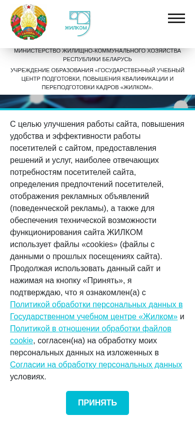 | SEO-описание | Министерство жилищно-коммунального хозяйства Республики БеларусьУчреждение дополнительного образования взрослых «Государственный центр повышения квалификации руководящих работников и специалистов «ЖИЛКОМ» |