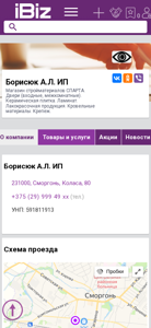 | Название / Заголовок | Борисюк А.Л. ИП - Магазин стройматериалов СПАРТА. Двери (входные, межкомнатные). Керамическая плитка. Ламинат. Лакокрасочная продукция. Кровельные материалы. Крепеж.. 231000, Сморгонь, , Коласа, 80 |