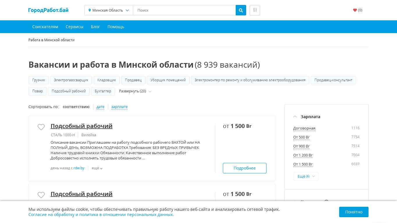 | SEO-описание | Ищете работу в Минской области? На нашем сайте Вы найдете более 8 939 свежих вакансий от прямых работодателей. Быстрый и удобный поиск вакансий с ГородРабот.бай |