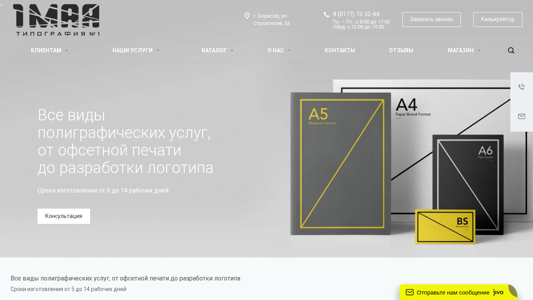 | AI-анализ | --- This website is for Borisovskaya Ukrupnenная Tipografiya im 1 May, a printing company specializing in a wide range of services for both corporate and individual clients. Professionalism and responsibility are the key advantages of our company. The website provides information about our products and services, including printed materials, calendars, certificates, and promotional items. It also features a price calculator, client information, and contact details. The top words used on the site are 'products', 'back', 'our', 'services', 'calendars', 'catalog', 'reklamnaia', 'it', 'razrabotka', 'saitov', 'prodvizhenie', 'saitov', 'bitrix'. The domain is borisovprint.by. |