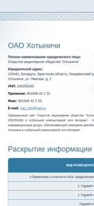 | Название / Заголовок | Хотыничи ОАО |