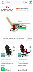 | SEO-описание | Официальный магазин Calviano в Беларуси. У нас Вы сможете купить массажные кресла Calviano, офисные и геймерские кресла, а так же беговые дорожки, велотренажеры и другие товара бренда Calviano. Любые формы оплаты. Доставки по всей Беларуси. |