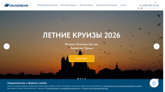 | AI-анализ | --- This website is an travel agency specializing in cruise vacations, offering both ocean and river cruises from various companies such as MSC, Royal Caribbean, Celebrity, Astoria Grande, and many others. The website provides current pricing, online application, and payment options. The agency is identified as OOO Cruisedream and their contact number is +7 499 430 10 30, available Monday to Friday from 9:00-19:00. Users can search for cruises by destination, type, and company. The website offers information on cruises to various regions including Asia, Australia, and New Zealand, Europe, and the Americas. There are also sections for New Year's cruises, summer cruises, and cruises for specific companies like Astoria Grande, Celebrity Cruises, Explora Journeys, MSC Cruises, and |