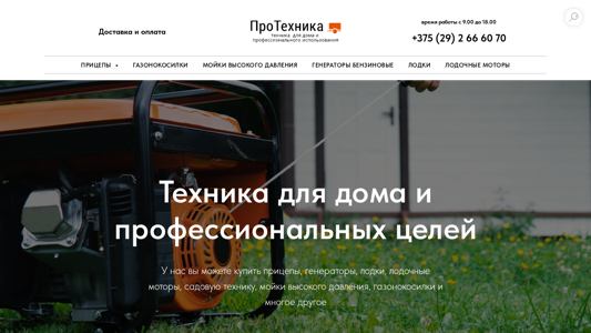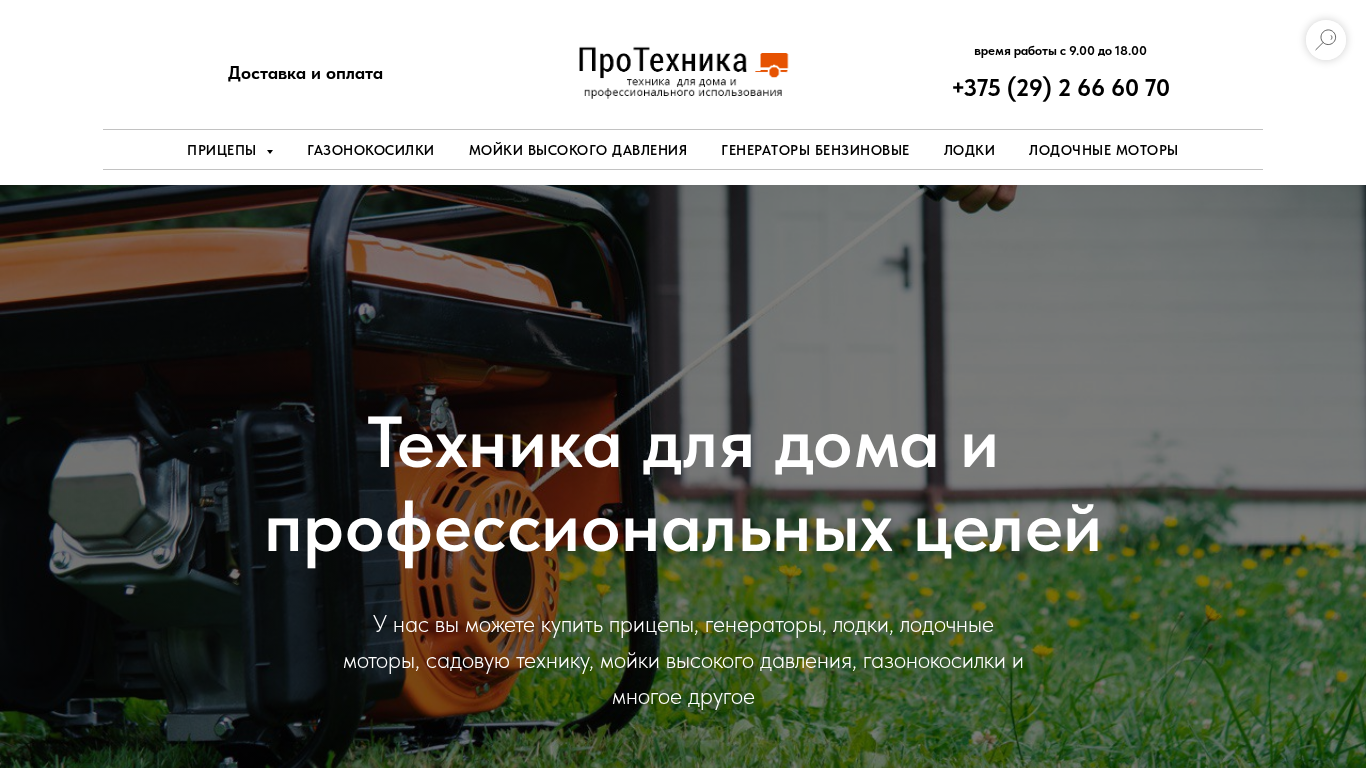 | SEO-описание | У нас вы можете купить прицепы, газонокосилки, мойки высокого давления, бензиновые генераторы, лодки, лодочные моторы и другую технику по выгодным ценам с гарантией. Рассрочки. |