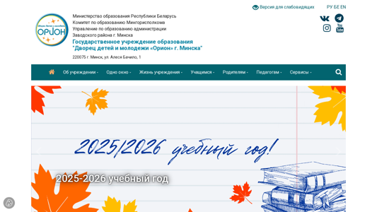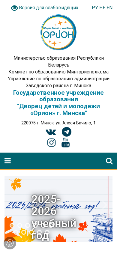| Название / Заголовок | Министерство образования Республики Беларусь Комитет по образованию Мингорисполкома Государственное учреждение образования «Дворец детей и молодежи «Орион» г. Минска» |