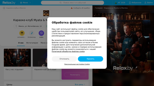 | SEO-описание | Караоке-клуб Myata & Mamba (Мята & Мамба) в Минске – отзывы, телефоны, график работы и карта проезда на Relax.by |