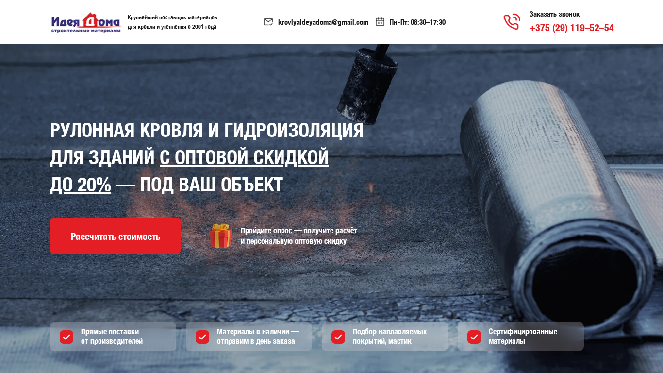 | Название / Заголовок | Рулонная кровля и гидроизоляция для зданий с оптовой скидкой до 20% — под ваш объект |