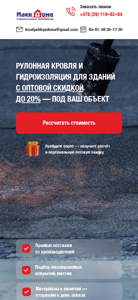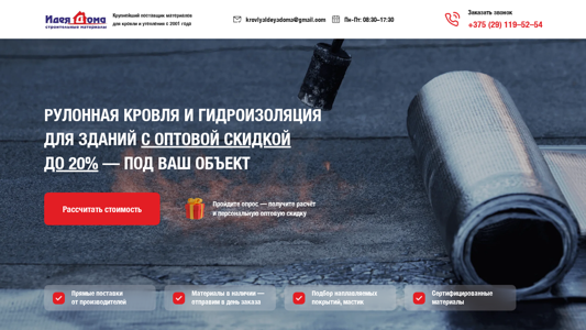 | AI-анализ | This website is an e-commerce platform for selling roofing materials and hydraulic insulation for buildings with a discount of up to 20% for bulk purchases. Established in 2001, it is the largest supplier of materials for roofs and insulation. Customers can request a quote and receive personalized discounts after completing a survey. The company offers a wide range of roll-on roofing materials for flat roofs, foundations, terraces, and basements, available for immediate delivery or custom order. The materials are directly sourced from manufacturers and are certified. The website provides a form for customers to provide their name and phone number to receive a quote and material selection assistance. The company's central office is located in Minsk, with a warehouse address also provided. The site's top keywords include "site," "data," "personal," "confidentiality," "user |