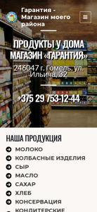 | AI-анализ | This online resource, titled "Гарантия — Магазин моего района" (Guarantee - Shop in my district), is a local e-commerce store based in the city of GoMEL, Belarus, with the address 32, Ilyicha street. The website offers a range of products including milk, sausages, cheese, oil, sugar, bread, canned goods, and beverages. The contact information is provided with three phone numbers and an email address. The shop's opening hours are specified for both the summer and winter periods. The main menu consists of the Home page, Contacts, and Products categories. The website is operated by OOO "Гарантия" and was produced by AMNESIA. |
