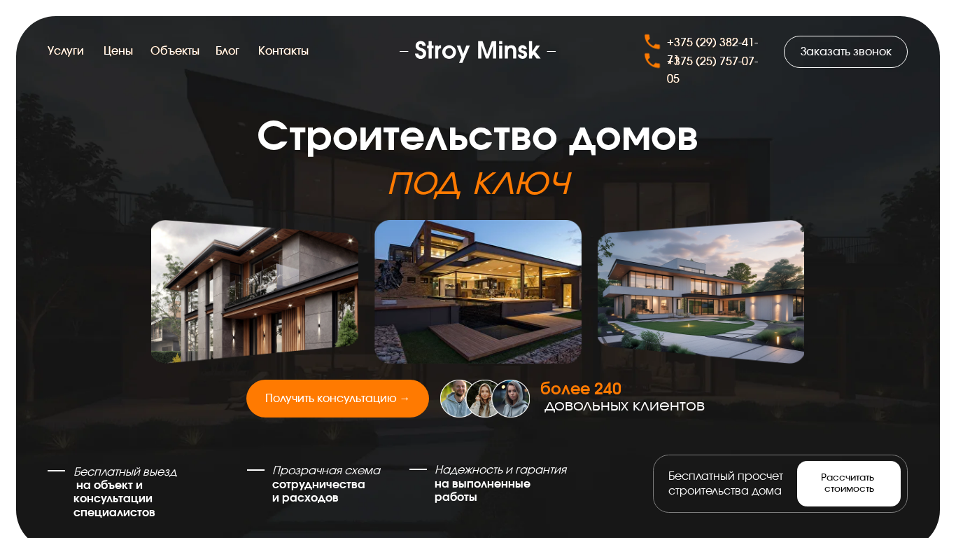 | SEO-описание | Строительство частных домов под ключ в Минске. Широкий спектр услуг, доступные цены, использование лучших материалов и технологий. Бесплатная консультация |