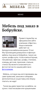 | AI-анализ | The portal is an official website for the furniture manufacturing company "Oфистек" based in Bobruisk, Belarus. It offers custom-made furniture including kitchens, wardrobes, living rooms, children's furniture, offices, and trade equipment. The website includes a photo gallery showcasing their work, and the company provides delivery and assembly services, with various payment options for individual customers. |