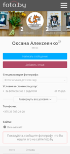 | AI-анализ | --- The website alekseenko.foto.by is dedicated to the work of photographer Oxana Aлексеенко from Minsk, Belarus. The main focus of the site is on photographs taken in a children's daycare center, as indicated by the title and the description. The photographer offers photo albums and releases for graduation events held in the daycare center. The top keywords on the site include "фотосъемка" (photoshoot), "фотограф" (photographer), "минск" (Minsk), and "фотографии" (photographs). The site also features sections for various types of photography and services, such as individual photo sessions, corporate events, and weddings. Visitors can leave reviews for the photographer and view a portfolio of their work. The site includes information on the photographer's specializations, pricing, |