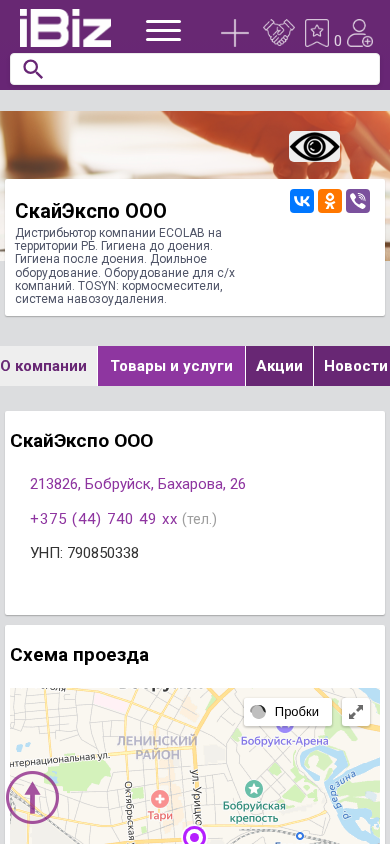 | Название / Заголовок | СкайЭкспо ООО - Дистрибьютор компании ECOLAB на территории РБ. Гигиена до доения. Гигиена после доения. Доильное оборудование. Оборудование для с/х компаний. TOSYN: кормосмесители, система навозоудаления.. 213826, Бобруйск, , Бахарова, 26 |