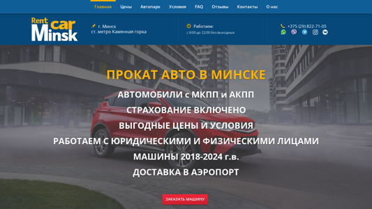 | SEO-описание | Аренда и прокат авто в Минске без водителя недорого. Выезд в РФ и ЕС. Подача в любую точку и аэропорт. Быстрое оформление. |