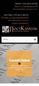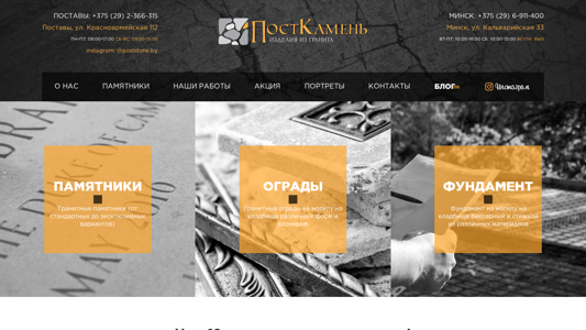 | SEO-описание | Изготовление памятника в Минске от компании ПостКамень ✅ Низкие цены ✅ Пожизненная гарантия на памятник ✅ Собственное производство ☎ Звоните +375 (29) 641-71-83 |