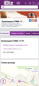 AI-анализ | The web project "Лунинецкая СПМК-17 УП" offers various construction services including painting, glass works, finishing works, insulation works, and plastering works. The company is located in Luniнеc, Belarus, at the address Первомайская 26. The contact details for the company, including phone number and UNP, are provided on the website. The business hours are from 9:00 to 18:00, Monday to Friday, with Saturdays and Sundays being holidays. |