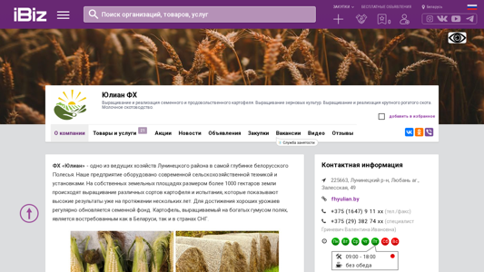 | AI-анализ | The website "FH-Yulian.ibiz.by" is a Belarusian agricultural business focused on the production and sale of various crops and livestock. The main agricultural products include carrots, potatoes, grains such as pshycnica, triticale, wheat, barley, rapeseed, and corn. The business also engages in cattle farming and milk production. The website provides information on the company's location, which is in the rural area of Zaleska, Lubiany Agrarian Community, in Belarus. The company's offerings are in high demand both domestically and in the CIS countries. The primary business activities of FH-Yulian include the cultivation and sale of seed and food potatoes, grains, and livestock farming. The business is equipped with modern agricultural technology and facilities, allowing for efficient and productive farming |