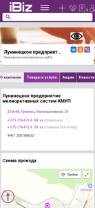 | AI-анализ | --- The web project "Лунинецкое предприятие мелиоративных систем КМУП - Проведение мелиоративных работ" is a Belarusian business located at Мелиоративная 29, 225644, Лунинец. The company offers meliorative services and sells related machinery and structures. The main phone numbers for customer inquiries and the main accountant are +375 (1647) 6 98 xx and +375 (1647) 6 30 xx, respectively. The business hours are Monday through Friday, 08:00-17:00, with lunch breaks from 13:00-14:00. The company is listed under the categories "Мели |