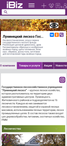 | AI-анализ | The website is for the State Forestry Enterprise "Luninetsky Leshoz," which specializes in forest restoration, maintenance, and protection of the state forest fund. The enterprise offers the sale of commercial timber, firewood, and various pine and spruce wood products, including pilings, paneling, flooring, and logs for tar production. The address and contact phone numbers for the company are provided, along with a map for navigating to the location. The website also mentions six forestry subdivisions, each responsible for forest restoration, protection, and commercial use, and includes contact information for their respective forestry rangers. |