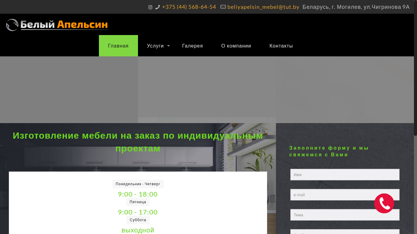 | SEO-описание | Мебель на заказ по индивидуальным размерам в Могилеве: кухни, шкафы, распил ЛДСП, замена фасадов с монтажом от компании ООО "Белый Апельсин" |