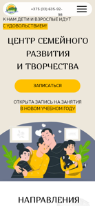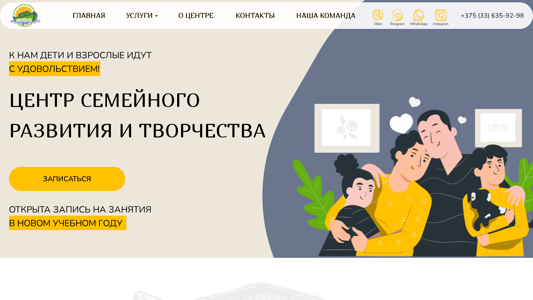 | AI-анализ | This website is for the Center for Family Development and Creativity in Minsk, Belarus. The center offers various courses and services, including English language classes, logopedics, psychology, Chinese medicine, and more. Visitors can find information about the team, contacts, and the center's offerings, such as Anglophone education for children and adults, beauty and health services, self-defense, and a repetitor for the early school years. The center is open for registration for the new academic year and welcomes both children and adults. Services are offered for various age groups and subjects, including English language classes for children, logopedic and psychological consultations for children and adults, and massage services for adults. The website also provides an option for a free trial session and allows visitors to contact the team with any questions. The center aims to create an environment where learning, development, and care go hand in hand |