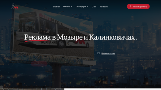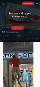 | AI-анализ | language: ru  The portal Startmedia offers various types of advertising in the cities of Mozyr and Kalinkovich. These include advertising on video display units, outdoor advertising (signs, light boxes, information stands), television advertising, and printing services such as business cards and large format printing. The company has over 300 clients and provides a wide range of advertising solutions. Users can submit their order with their name and phone number, and receive a notification upon completion. The site includes a 'Contact Us' section with phone numbers and email address for inquiries. |