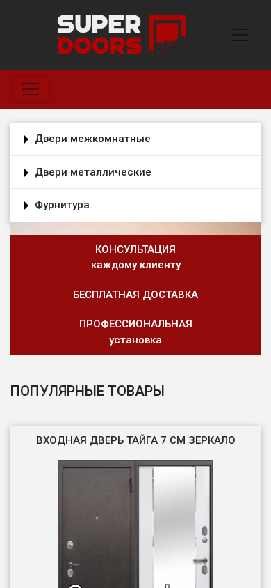 | AI-анализ | This online resource is a catalog for Superdoors, offering a rich selection of entrance and interior doors. The website guarantees quick delivery and professional installation across the country. Brands featured include Юркас ЭльПорта Verda МеталЮр Portas Металюкс Йошкар Экошпон 3D МДФ Kaiser Фактор Сталлер Юнидорс. The homepage consists of a main catalog, contacts, and categories such as Deform Series, Stroydetali, and Todex. Popular items include discounts on the Taiga 7cm mirror door, Garde 8mm veneered door, and D4 DEFORM door. The website offers free consultation and delivery, with professional installation services. The domain is superdoors.by. |