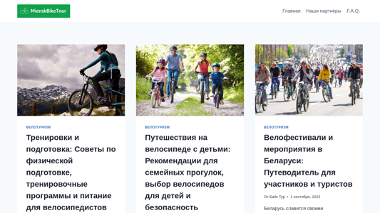 | AI-анализ | This online resource, Вело Туризм — Все о вело туризме (veloturizm.by), is dedicated to providing information and recommendations for those interested in bike tourism in Belarus. The website offers advice on physical preparation, training programs, and nutrition for cyclists, as well as recommendations for family bike rides, children's bicycles, and safety measures. Additionally, it features a guide for participants and tourists on various bike events and festivals in Belarus. The domain name, minskbiketour.by, is related to this resource. |