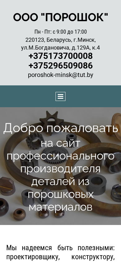 --- The web project "Poroshki.by" is a professional manufacturer of details from powder materials. It aims to be helpful for designers, constructors, technologists, manufacturers, and any specialist involved in making parts and assemblies in automotive, machine, and instrument industries. The site introduces their product range, raw materials, and contacts. Poroshki.by expects the site content to help users find the optimal solution to make their products more technological and economically advantageous using powder metallurgy methods. Powder metallurgy starts with the acquisition of metals in powder form. Then, these powders are mixed with various required components, both metallic and non-metallic, to give the future product desired properties. The powder mixture (batch) is then pressed into molds for shaping. Subsequently, the pressed pieces are sintered, in a protective atmosphere, below the melting temperature of