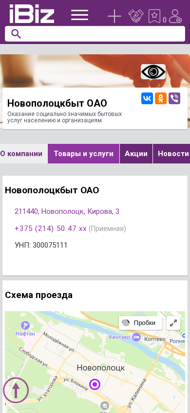 | Название / Заголовок | Новополоцкбыт ОАО - Оказание социально значимых бытовых услуг населению и организациям.. 211440, Новополоцк, , Кирова, 3 |