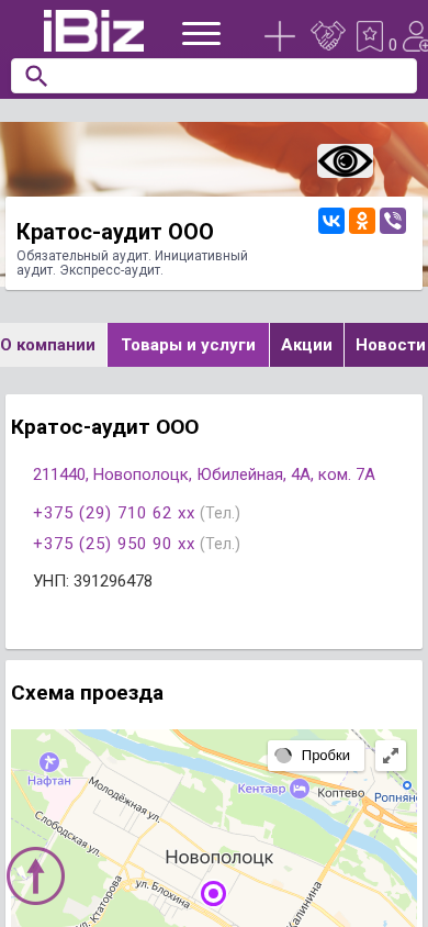 | Название / Заголовок | Кратос-аудит ООО - Обязательный аудит. Инициативный аудит. Экспресс-аудит.. 211440, Новополоцк, , Юбилейная, 4А, ком. 7А |