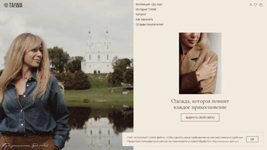 | AI-анализ | language: by Country: Belarus This website is an e-commerce store for the Belarusian clothing brand TAIWA, based in Polotsk. It offers authentic clothing items made from natural fabrics that never go out of style, and delivers worldwide. The brand focuses on creating beautiful, authentic pieces for people who are on their way to their own star, moving quietly and honestly. The collection 'Да зор' (Go Your Way) emphasizes the importance of believing, dreaming, and acting to reach one's goals. Each item in the collection represents one of these steps, such as the dreamy tweed skirt 'Мечтай' or the power blouse 'Верь'. The brand was founded by Tatiana, who creates each piece from scratch with openness, honesty, strength, and true self-expression in mind. The website includes customer reviews, information on |