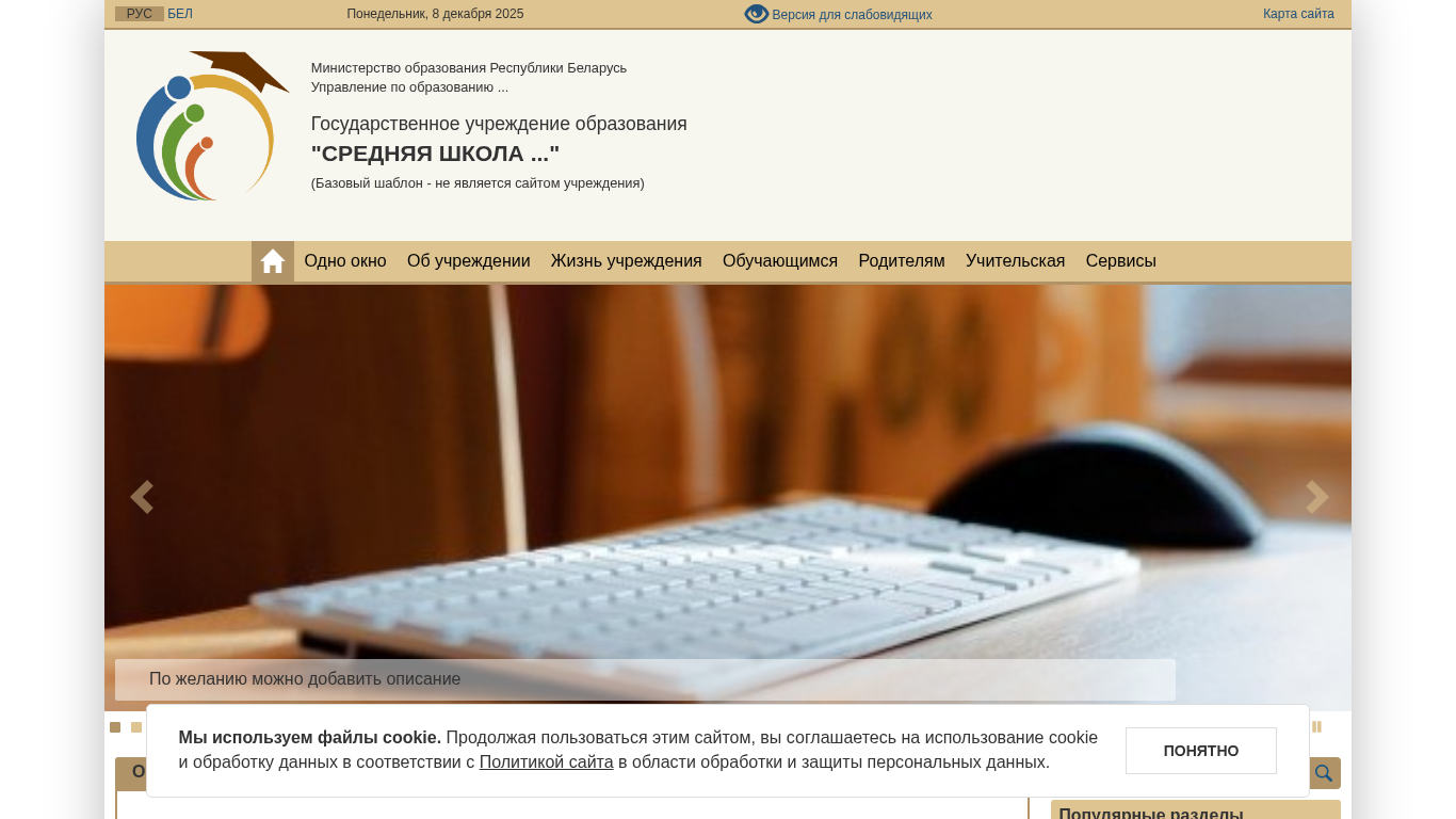 | AI-анализ | This online resource is a website belonging to the Middle School (name unknown) under the Ministry of Education of the Republic of Belarus. It provides information about the administration's work schedule and application procedures, as well as various forms and electronic submissions. The site also features a library, media center, and social-psychological service. Additionally, there are sections for parents, teachers, and a parental council. The site includes a contact page with information on how to get in touch, as well as a structure and functions section. The school's history, mission, and values are not explicitly stated on the given data. The domain is school1.edu.by. |