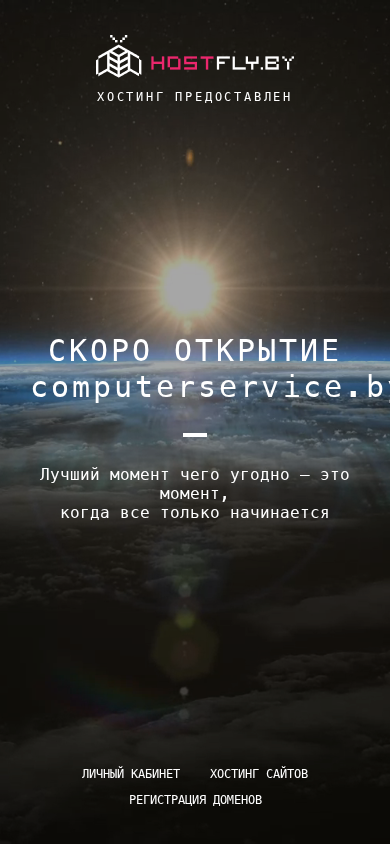 | AI-анализ | The web project "Soon Opening" at computerservice.by offers website hosting and domain registration services. The title and description of the site emphasize the upcoming availability of these offerings, using the words "soon opening," "prepared," and "registration" frequently. Keywords related to hosting, opening, moment, and registration are present in the metadata. The site also includes a reference to a "personal cabinet" for managing hosted sites. |