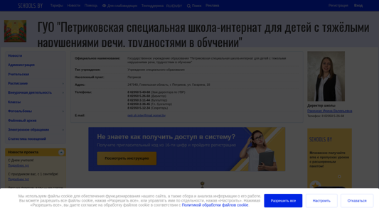 | AI-анализ | --- The web project petr-inter.schools.by is the official website of the Petrikovskaya Special School-Internat for Children with Severe Speech Disorders and Learning Difficulties in Belarus. The website's title is "Petrikovskaya Special School-Internat for Children with Severe Speech Disorders and Learning Difficulties" and it is ranked high in searches related to education, children, Belarus, and the Ministry of Education. The site contains information about the school, its mission, and services provided. Cookies are used for site functionality and data collection. Visitors can allow or manage cookies through the site's cookie policy. The color scheme is white with black text, and images are turned off. |