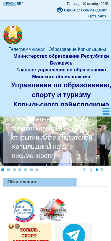 | Название / Заголовок | Управление по образованию, спорту и туризму Копыльского райисполкома |