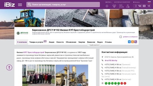 | AI-анализ | The portal is a branch of KUP Brestoblgorstroy, known as Berezovskoe DRSU №102, specializing in the production and maintenance of asphalt roads. It operates an asphalt concrete plant (DS-180) and a factory for producing bitumen emulsions. The company offers services for the construction, repair, and maintenance of automobile roads, as well as the production and sale of asphalt concrete mixtures. Notable projects include the asphalt concrete plant PM-80 on Bronnaya Gora, the asphalt concrete plant DS-185 producing high-quality asphalt concrete mixtures, and the production facility for bitumen emulsions. The company has contributed to the construction of access roads to Pruzhany and Kobrin, as well as parts of the Bialowieza Forest National Park |