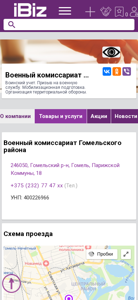 | AI-анализ | The website is for the Military Commissariat of the Homelsky District in Belarus, providing military registration, conscription, mobilization training and organization of territorial defense. The contact details, address and phone numbers are also listed along with a map scheme for reaching the location. The domain is registered under the .BY extension for Belarus and the company is listed under the category of 'Military Commissariats and Commandories' in the Yandex Business Directory. |