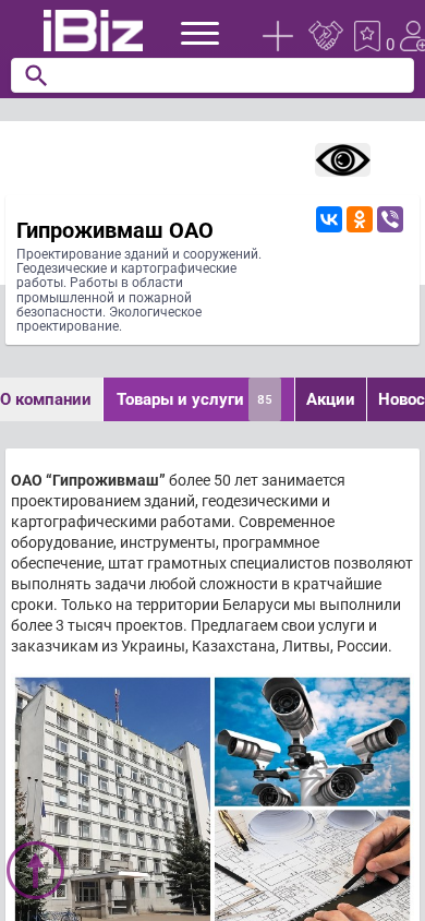| AI-анализ | The portal gipro-gomel.ibiz.by is a Belarusian company, OAO Giprozhivmash, specializing in building and construction projects, geodesic and cartographic work, industrial and fire safety systems, and ecological design. With modern equipment, instruments, and software, and a team of skilled professionals, the company can handle projects of any complexity within short timeframes. In Belarus alone, they have completed over 3,000 projects. They offer their services to clients in Ukraine, Kazakhstan, Lithuania, and Russia. Their services include project design, investment justification, engineering-geodesic surveys, ecological design, cartographic work, design of fire safety and security systems, and more. The company has implemented a quality management system for project design in accordance with the STB ISO 9001 standard. Some of their |