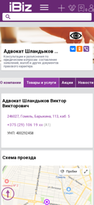 | AI-анализ | The portal is a legal consulting and document preparation service offered by Advocate Viktor Shlyandkov in Gomel, Belarus. The website provides information about the advocate's consultations and explanations on legal issues, as well as the drafting of applications, complaints, and other legal documents. The contact information and address for the company, Advocate Shlyandkov Viktor Viktorovich, is listed as 246027, Barykina Street, 113, office 5. The website also includes a map showing the location and contact telephone number +375 (29) 106 19 xx (А1). The company's UNP number is 400292458. The portal is listed under the "Lawyers" category and can be found in the "Gomel" region. The website |