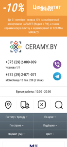 | SEO-описание | 😋 Интернет-магазин керамической плитки и керамогранита в Минске. Огромный выбор плитки на сайте и в наших салонах. Минимальные цены от импортеров, рассрочка по картам. Дизайн-проект - бесплатно. Доставка - быстро! |