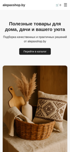 | AI-анализ | This online resource is a Belarusian e-commerce website titled "Каталог товаров — alepaxshop.by". The description section mentions the availability of 'полезные товары для дома, дачи и вашего уюта' or 'useful goods for home, cottage and your comfort'. The website offers a selection of items which can be found in the 'Категории товаров' or 'Categories of goods' section. Some of the featured products include a 'Сумка Polene 2 в 1' or 'Polene 2 in 1 bag', a 'Подарочный набор' or 'Gift set', a 'Набор для специй' or 'Spice set', 'Силиконовые коврики' or 'Silicone rugs' and 'Безмен-весы' or |