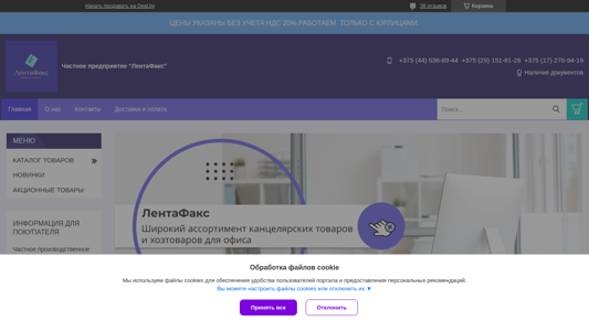 | Название / Заголовок | ЛентаФакс. Канцтовары, офисная бумага, хозтовары и другие товары для офиса с доставкой по Минску |