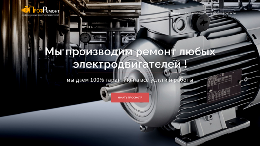 | AI-анализ | This website, titled "Главная *" (Home in English) for ПрофРемонт (ProfRepair in English), is dedicated to providing reliable and high-quality repair services for various industrial electrical motors. The description highlights the company's commitment to producing only top-tier repair work. Keywords include "ремонт электродвигателей" (electric motor repair), "компания" (company), and "гарантию" (guarantee). The website offers services for industrial electrical motors with voltage ranging from 36V to 660V and power ranging from 0.01kW to 350kW. The company prides itself on using only quality equipment and materials and providing a transparent, honest invoicing system. Services offered include motor rewinds, voltage and frequency conversion, and motor analysis. The company was |