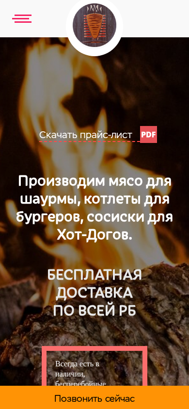 | SEO-описание | Все для фастфуда. Мясо, котлеты, сосиски, лаваш и многое другое. Бесплатная доставка по всей РБ. Звони ☏8-044-556-44-44 |