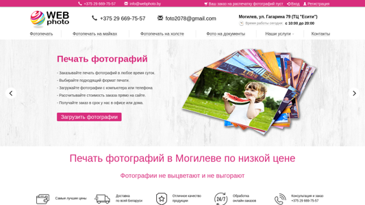 | AI-анализ | --- The web project "Web Photo" offers photo printing services on shirts and documents in Mogilev, Belarus. It also provides video cassette scanning in Esiti, with affordable prices and discounts during promotions. The site allows users to print photos at any time, select the desired format, upload images from their computer or phone, and calculate the cost directly on the site. The service offers delivery across Belarus and high-quality products. The website also provides digital services such as photo film scanning and video cassette scanning for formats including VHS, VHS-c, MiniDV, and Video8. |