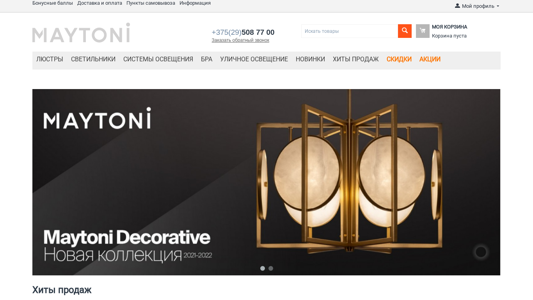 | AI-анализ | --- This online resource is the official partner of Maytoni, Freya, and Voltum in Belarus for purchasing lighting fixtures and chandeliers from these brands. It offers Maytoni and Freya products, as well as Voltum switches and sockets with free shipping and a private warehouse. The website includes a shopping cart, a list of comparison items, delayed orders, and a registration system for users to manage their orders and profile information. The product categories include ceiling lights, wall-mounted lights, built-in lights, spotlights, and lighting systems, as well as various components and accessories. The website also features a contact section, bonus loyalty points, and a returns policy. The brands Maytoni, Freya, and Voltum offer a range of products for different applications, such as outdoor and architectural lighting, and new and best-selling items are highlighted. The website also features |