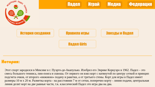 | Ключевые слова | Падел Теннис История Паддл Padel Paddle Paddle-tennis Padel-tennis Падел-теннис Паддл-теннис Падел теннис Беларусь БФПТ Падел Беларусь Белорусская федерация падел тенниса |