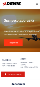 | SEO-описание | ООО Демис предоставляет услуги экспресс-доставки документов, посылок и грузов с использованием сетей FedEx и TNT по всему миру. |