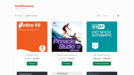 | AI-анализ | The website is an e-commerce platform selling activation keys and product codes for software applications, specifically for Windows and Office. Customers in Belarus and Russia can purchase these keys at low prices. The website features a shop with various software offerings, including Nitro PDF, Pinnacle Studio, ESET NOD32 Antivirus, Ashampoo Backup Pro, Ashampoo Office, Ashampoo UnInstaller, Ashampoo WinOptimizer, Ashampoo Driver Updater, Ashampoo Burning Studio, Movavi Video Editor, AdGuard Premium, AdGuard VPN, PureVPN, Surfshark VPN, NordVPN, Windows 11 Professional, Windows 11 Home, Windows 10 Professional, Windows 10 Home, Office 365 Pro Plus, Office 2021 Professional Plus, Office 2019 |